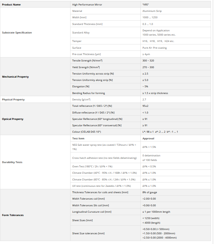 SMMT high performance Al mirror product V95 is specially designed to attain high specular reflectance and "Indoor Louver-type Light Collecting System" application.