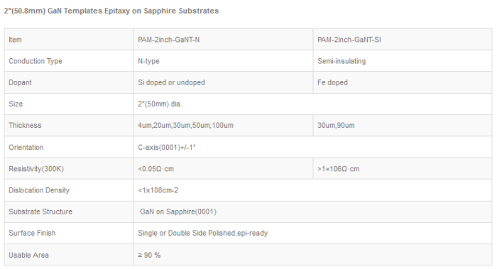 2″ (50.8mm)GaN Templates Epitaxy on Sapphire Substrates