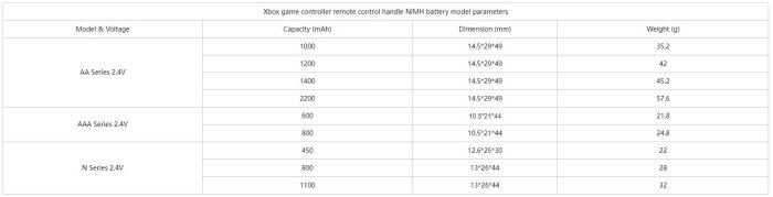 Remote control gamepad batteries are generally used 5 batteries, which we often say AA NiMH battery size, of course, there is a need for smaller size 7 batteries, that is, AAA batteries, are more common in everyday life; X-BOX gamepad using NiMH batteries are also AA type or AAA type NiMH batteries.