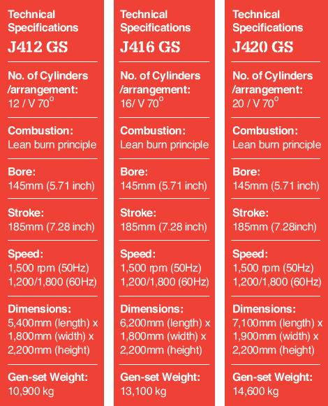 - Low NOx emissions versions available <250mg/Nm3 for biogas, achieved without the requirement for an exhaust catalyst.