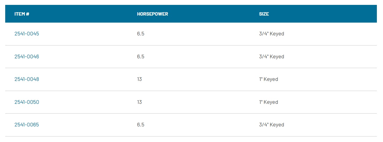 PowerPro 6.5 horsepower gas engines are available with recoil or electric start. Electric start option available for quick start-up. Dual-element air filter provides highest degree of filtering. Cast iron cylinder sleeve for commercial use. Overhead valve for cleaner operation. Equipped with a robust low-oil sensor to prevent engine damage. CARB/EPA certified engines.