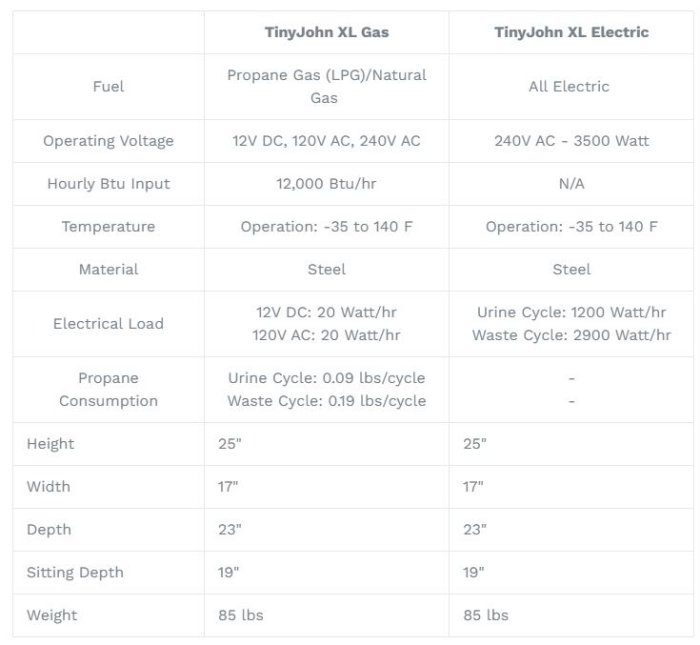 ECOJOHN - Model TinyJohn XL -Gas or Electric - Waterless Incinerator Toilet