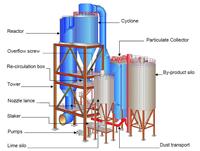 One of the reasons for the high efficiency of the KC Cottrell GSA is that the reactor has been based on gas suspension technology. This means that a very large concentration of fly ash, dust particles and lime builds up inside the reactor, which will allow normally 50 to 100 times higher concentration than in a conventional reactor. The effect is further enhanced by the fact that lime, fly ash and by-products are recycled about 100 times in the KC GSA system .