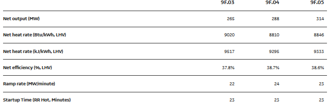 The 9F.03 and .04 feature faster start times—up to 20 minutes in simple-cycle and 30 minutes in combined-cycle—along with better availability and high fuel flexibility, as well as improved survivability from grid disruptions and load transients