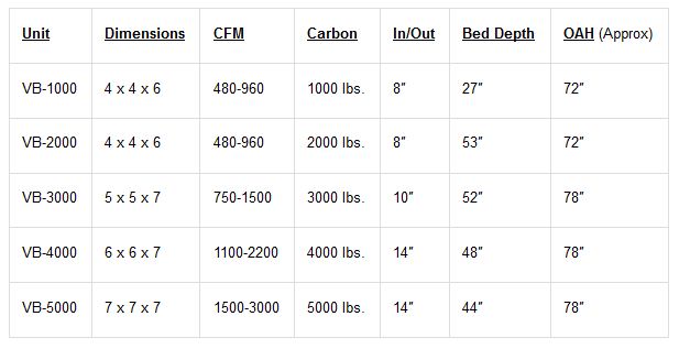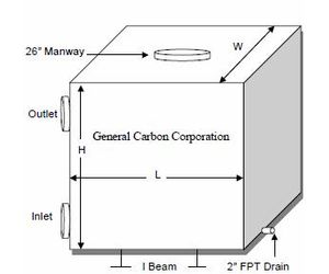 General Carbon’s Vapor Box series of carbon adsorbers are versatile high airflow units. Each filter is easily transportable via the “l” beams support structure or lifting lugs. The large bed surface area in each model allows for the treatment of higher airflow rates. The Vapor Box adsorbers are constructed of mild steel and have two part epoxy coatings on the inside and industrial enamel on the outside to provide long service life. They are equipped with a manhole large enough for easy carbon changeouts. Several different grades of virgin and reactivated carbon are available to satisfy any of your filtration requirements.