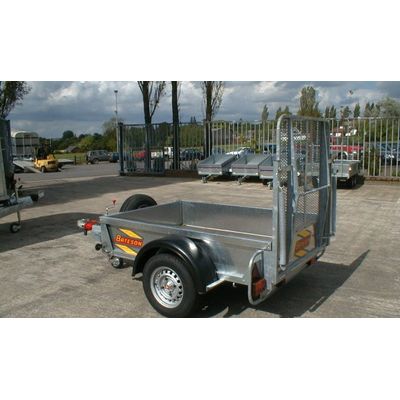 6′ x 4′ Our smallest heavy duty general purpose trailer. 0642 shown with optional ramp tailboard. Model 0642 is the smallest of our heavy duty trailers with auto reversing over run brakes.It has a clear 4′ width and will accept 4′ material or 1 ton pallets with ease. In common with all the general purpose trailers in this range, Model 0642 has a hot dipped galvanised steel chassis with 2mm thick pre-galvanised steel sides 300mm deep and an 18mm phenol coated non-slip plywood floor. The independent rubber suspension axle has auto reversing brakes, operated by cast steel hydraulic damped over run coupling with a power assisted hand brake and integral jockey wheel.Full road lights, a hitch lock and a spare wheel are all standard.