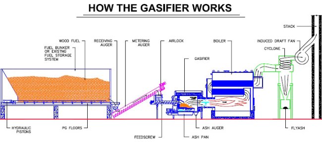 The solutions we propose leverage the strengths of the gasification process to generate heat, electricity and combustible gas fuel known as wood gas, "producer gas" or "syngas".
