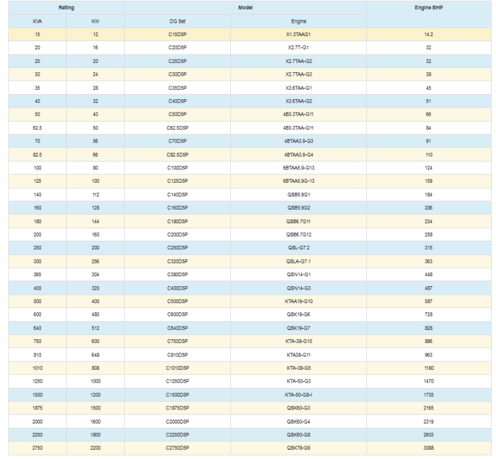 KVA 15. KW 12. DG Set C15D5P. Engine X1.3TAAG1. Engine BHP 14.2.