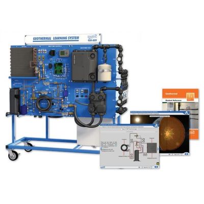 Industry Standard System Components and Features!From its 2-stage compressor and 2-ton heat pump to the ground source loop that includes a flow center and a header loop, Amatrol’s 950-GEO1 Geothermal Energy Training System delivers features commonly found in installed geothermal systems but often excluded from training systems. These include a variable speed ECM air blower, water coil heat exchanger, sight-glasses at many points in the system for observing the refrigerant cycle, ample temperature and pressure monitoring, electrical test points, ground simulation, and even the high-density polyethylene pipe specified for use in installed geothermal systems. These technical components are clearly labeled and mounted for easy observation on a vertical panel, allowing learners to easily observe and evaluate system operation and performance.
