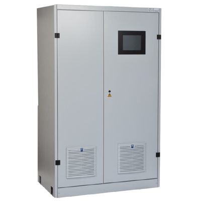 GR-3811 with touch screen TFT display. GR-3812 with LC-Display. Equipment: Thyristor rectifier 6-pulse (12-pulse optional). Input contactor for rectifier. Automatic charge. Analogue control. Microprocessor-controlled monitoring. Digital display with event ring memory (non-volatile): GR-3811: colour TFT panel with touch screen, GR-3812: LC display with LED indicators in mimic diagram. Power unit with two-stage temperature monitoring (Warning message / shutdown). Galvanic isolation between input and output. 8 remote signals (potential-free contacts, configurable). RS232 interface. Can be connected in parallel. Programmable battery test.