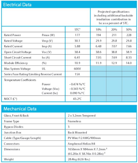 - BIFACIAL - Model HB180 - Glass on Glass ...