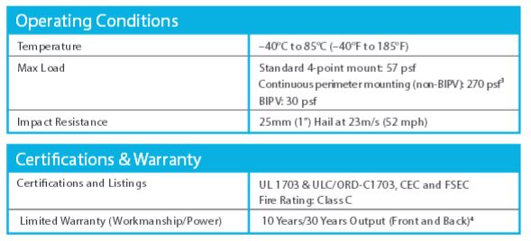 Both front and back surfaces of the module are equally capable of generating electricity. The back surface generates power through the use of light reflected from the surrounding area. Mounting considerations that maximize a site`s available albedo light can yield up to 35% gain in energy generation per installed Watt.