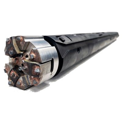 A unique gearbox design coupled with two engines for rotation and hammering break down any type of rock.