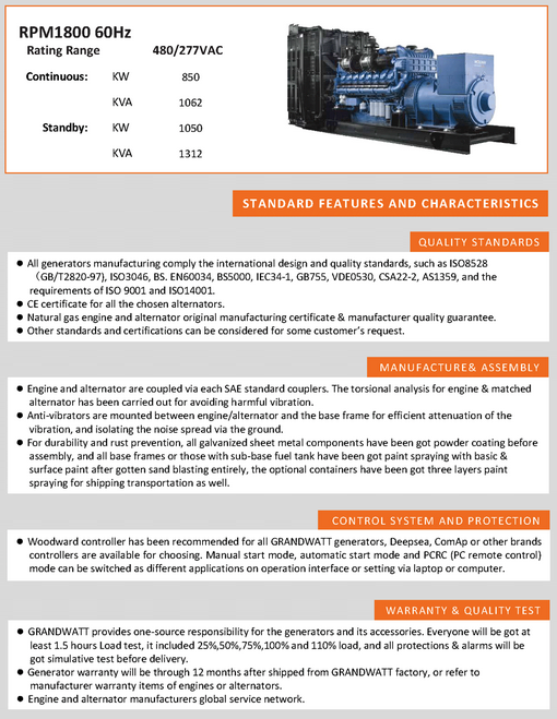 Grandwatt - Model GWC1312XNG-823 -Natural Gas Generator (PSI)