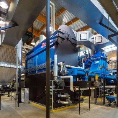 Messersmith combustion systems are designed to efficiently burn a variety of wood based fuels with moisture content up to 50%. The Messersmith combustion chamber contains a set of sloping grates, with no moving parts to jam or wear out. Fuel delivered from the Stoker Augers moves down the sloping grate system as it burns. Underfire combustion air is delivered to the fuel through small holes in the grates. Overfire combustion air is delivered above the fuel through nozzles built into the refractory lined sides of the combustor.