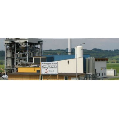 Here the bed material (olivin sand) circulating between the two fluidized beds is heated. The bed material transfers most of the heat generated in the combustion chamber into the gasification reactor. This method achieves significantly reduced emissions compared to oxidative processes (combustion). The resulting raw gas is cooled in two stages. The heat from this process step can drive an ORC or thermoelectric generator to produce electricity. Dust is filtered from the gas and tar is washed out with biodiesel. The final product is a valuable and versatile syngas.