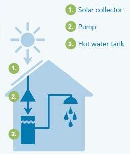 - Pump- To deliver the heat from the collectors to the hot water cylinder