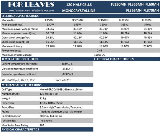 For-LeavesModel 350W-370W -Half Cut Cell Solar Panel