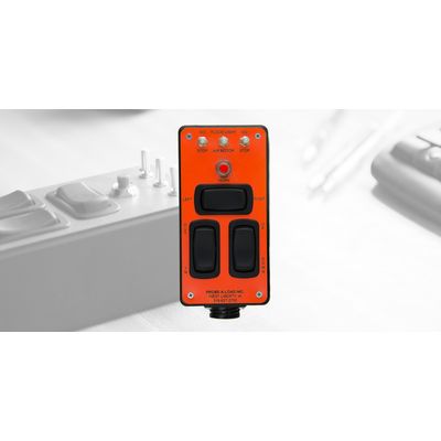 Compact control can be adapted for use either inside or outside the scale house. Fingertip touch easily operates all functions. Indicator lights also allow the operator to control traffic at the probing area. Low voltage control engages each operation with switching relays located on the mast of the probe. No special wiring required, power cord simply plugs into 110/120V, 30A outlet.