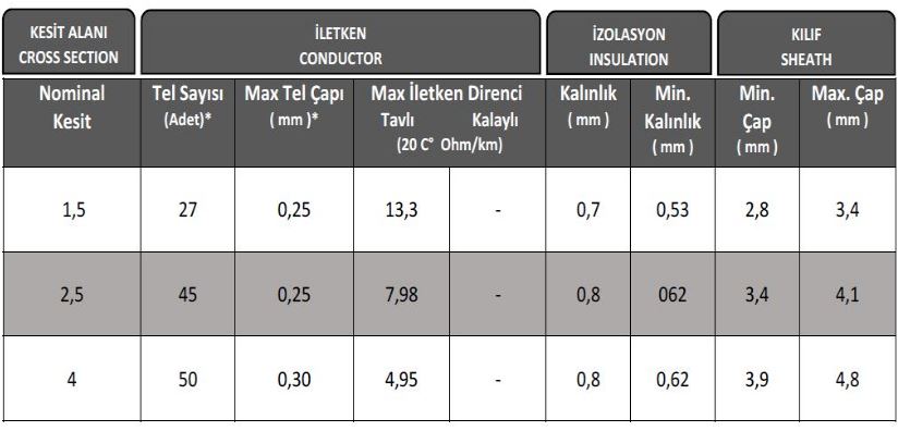 Max. Working temperature 90°C Max. Short circuit temperature 160°C It has a flexible and flexible structure. Test voltage is 2-2.5 kV.