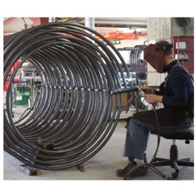 The heat exchanger is designed to deliver the heat from the solar circuit (which is filled with a mixture of water and antifreeze) to the tank water. It is important that this happens with as little loss as possible (AT max. 5-10°C). For this purpose the integrated flat tube heat exchangers in the tank have proved to be the best solution. Devices and machines specially designed by us allow the efficient production of heat exchangers.