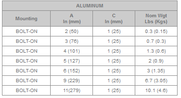 Canada Metal manufactures aluminum heat exchanger anodes in bolt-on style from 2” dia. to 11” dia. and 6” x 6” square.