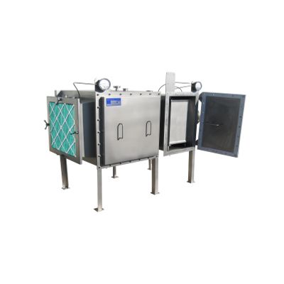 Heat exchanger housings can be built to contain several cores with separate or shared access panels. Mist eliminators can also be built into a housing to prevent condensed moisture from carrying downstream. The gas connection size and type can easily be changed to match system requirements.