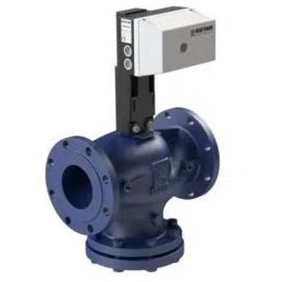 Two-way valves can modulate the flow of sub-atmospheric steam from the boiler or other sources into a steam distribution system. These actuators are equipped with a position feedback signal. In addition, valve sizes up to 6” can be ordered with a valve percent opening gauge. A typical example of this type of application would be using vacuum steam to heat radiators in a building. When the control, such as the SRC Platinum , calls to put heat into the system, the two-way valve partially modulates open and steam flows into the radiators based on the outdoor air temperature. Then when the control determines that sufficient heat has entered the radiators, the control marginally closes the two-way valve reducing the flow of steam, or closes the valve.