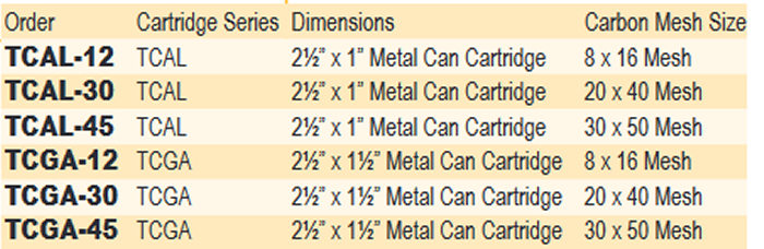 HI-Q TEDA - Model TC- TCAL-Series -Impregnated Carbon Cartridges