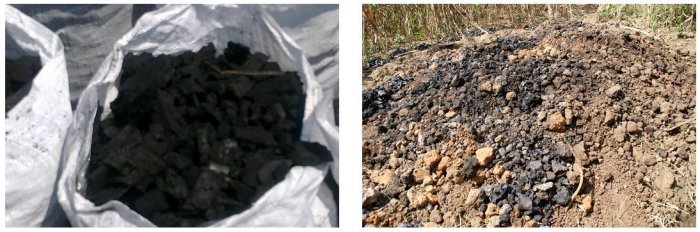 The charcoal production process is similar to the extremely slow natural process of coal formation from plants in the soil.