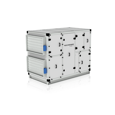 The high level of recovered heat also allows the use of normal heating/cooling systems to be considerably reduced with obvious economic advantages. To cover a vast range of applications, these RRU units are available in 7 sizes, with nominal air flows from 1.500 to 15.000 m³/h and available operating static pressure of 400 Pa.