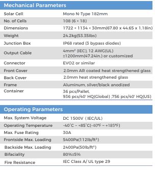 High Conversion Efficiency Module efficiency up to 22.8% based on N-Type wafer and advanced N-Type cell technology Excellent Energy Yield More power output in field operation due to better thermal behaviors, weak-light performance and bifaciality Outstanding Anti-degradation Unsusceptible to LID, LeTID and less annual degradation due to special charateristics of N-Type Quality Guarantee High module quality ensures long-term reliability.