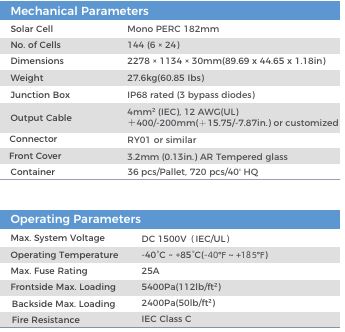 Runergy - Model HY-WH144P8-540/560 -High Performance Mono Perc Double Glass Modules