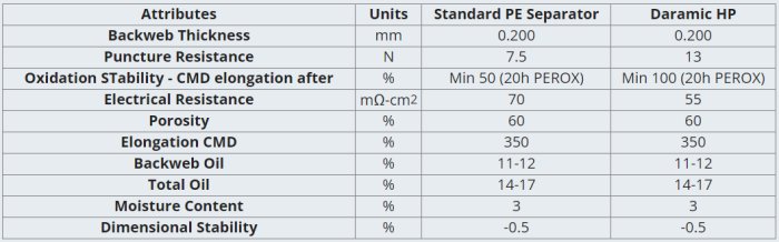 Daramic - Model HP -High-Performance Polyethylene Battery Separator