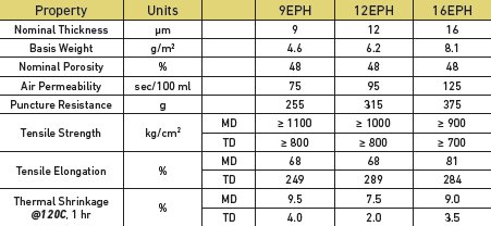 ENTEK EPH is specially formulated for high rate of discharge/recharge applications used in secondary lithium batteries powering portable electronic devices such as cordless power tools, lawn and garden equipment, high powered RC vehicles, and unmanned aerial systems.