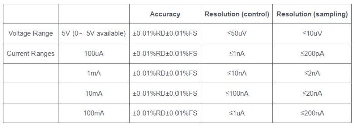 - Support half cell, three-electrode cell (with reference electrode) in the voltage range of 0~5V, current range 100uA to 5A