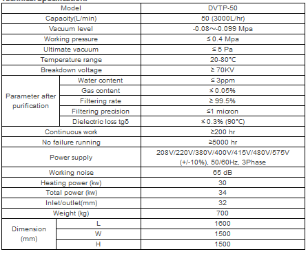 In order to lower the amount of moisture, gasses dissolved as much as possible, and also in order to eliminate solid products of oil oxidation process, the highly accepted concept of power transformers maintenance assume that activities of periodical purification of insulating oil are performed in the electric energy. For this purpose, Acore Filtration Corp. developed DVTP-50(3000 LPH) Double Stage High Vacuum Transformer Oil Purifier to reduce moisture, gasses content and remove particles, sludge for improving dielectric strength and maintain the characteristics of insulating oil. Through timely and proper oil purification of insulating liquids, which can improve the properties of the entire isolation system, maintain the normal functioning, good work security and extend the life cycle of power transformers.