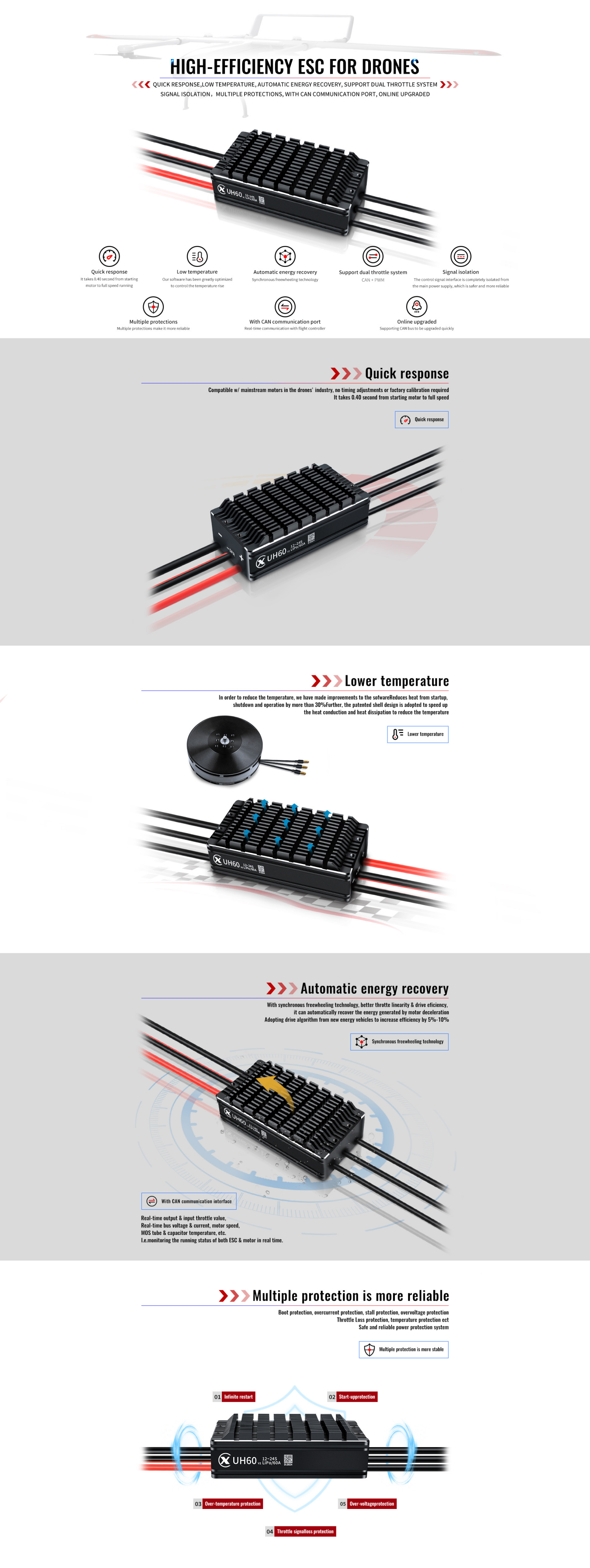 Xiongcai - Model UH60 v2/60A (12~24S) -High Voltage Motor Controller for Drone