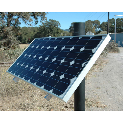 These versatile mounts can be installed on a pole or flat surface. They work great for automatic gates, on the sides of shipping containers or buildings, on a pole as a trickle charge to a battery box, in that spot where you need temporary power to run a security camera or light—most anywhere you need a smaller power source.
