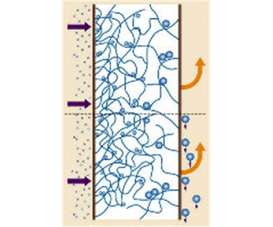 The mechanism of coalescence is different from that of filtration, because the particles of water do not permanently attach themselves to fibres. Provided that the fibres are of the correct size, density and material, a water particle that has become attached to a fibre will gradually slide along the fibres in same direction as the flow until, as shown below, it meets an obstruction such as an intersection of fibres.