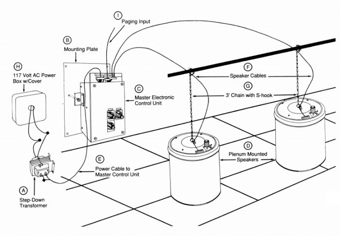 - Includes complete system with master control unit, transformer, speakers and cables for turnkey installation