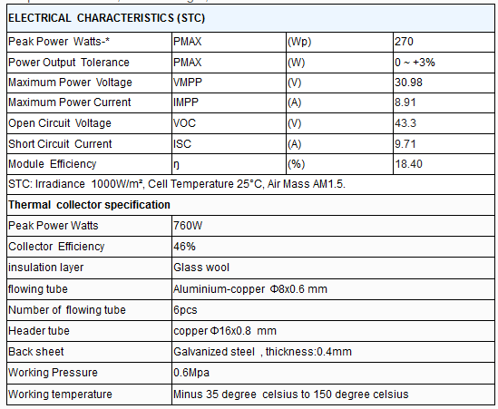 Qiruite - Model 270W 330W 450W 540W PVT -Hybrid Solar Panel