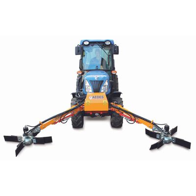 The Aedes Model CND Series Hydraulic Conveyor is engineered for efficient inter-row cleaning and debris management, which is ideal for vineyards and orchards. This bilateral hydraulic conveyor effectively moves pruned branches, leaves, and other debris to the center of the carriageway. Designed for front assembly on the tractor drawbar or three-point linkage (specify model and category), it features rotors with rubber scrapers or nylon brushes. The self-leveling system ensures consistent rotor performance, while hydraulic cylinders manage arm elevation and operation. Hydraulic motors power transmission, but connecting hoses to the tractor`s hydraulic system must be custom-fitted during initial installation. Compatible with both front/rear mounts and reverse drive tractors, the unit requires four double-acting hydraulic valves and one single-acting hydraulic valve with free return. Safety protections and CE certification are included.