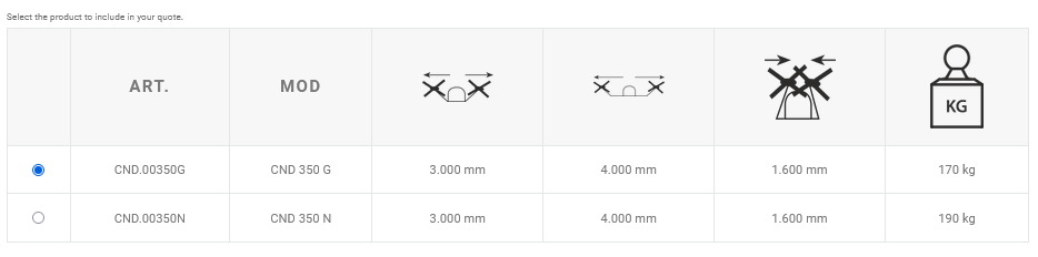 • Arm elevation through hydraulic cylinders with hoses up to the fitting/connection plate
