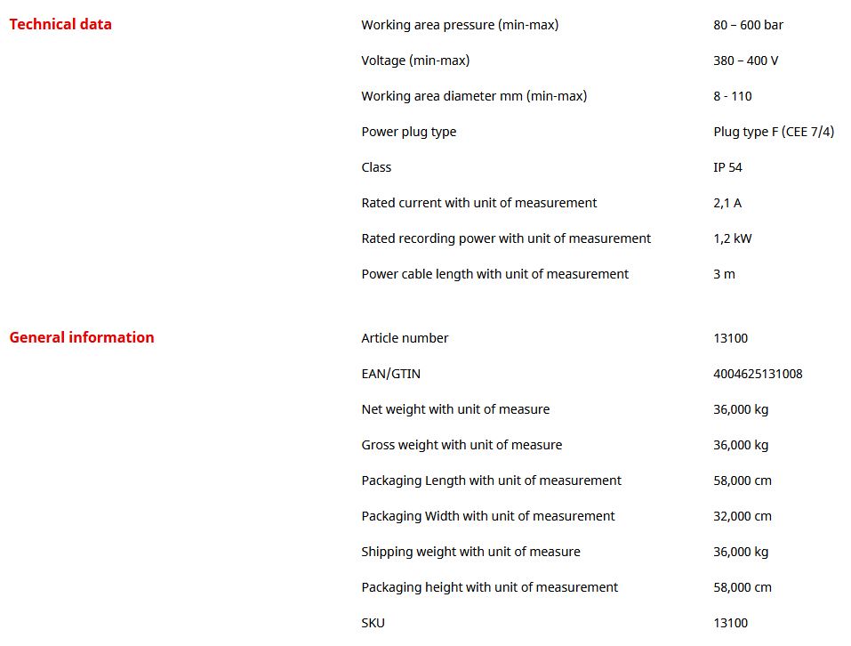 Industrial companies can use the H 600 hydraulic system to expand tubes made of copper, aluminum and stainless steel up to a wall thickness of 3 mm and an outer diameter of 110 mm in industrial quality. Choosen variant:Hydraulic system, H600, complete, without heads.