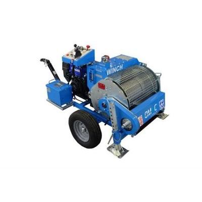 Hydraulic winch fit to pull one rope in service operations such as setting-ups and adjustment of transmission lines and underground cables laying. Direct pull on the drum.