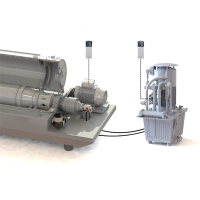 Electric motor with frequency converter control; bowl drive via V-belt. SCROLL DRIVE: hydraulic motor and hydraulic unit supplied via rotary connector; optional frequency converter controlled, energy efficient unit, Bowl and scroll drives are decoupled.