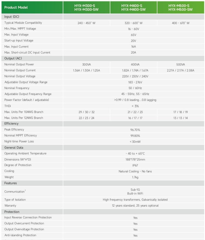 HyxiPower - Model HYX-M300/400/500-S/SW -Microinverter