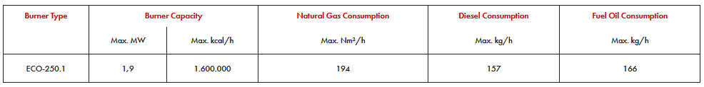 - It can be used with Natural Gas, LPG, Heavy Oil, Light Oil, Biogas and special fuels in ECO series industrial burners.