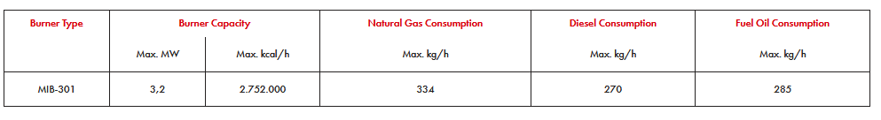 - Thanks to its high pressure and low pressure liquid fuel lances, it offers various application according to special needs.